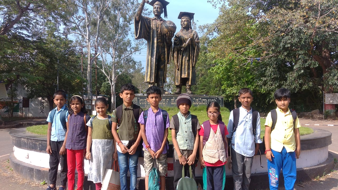 ಇಂದು ಮೂರನೇ ತರಗತಿಯ ಮಕ್ಕಳನ್ನು ಕರ್ನಾಟಕ ವಿಶ್ವವಿದ್ಯಾನಿಲಯದ ಆವರಣದಲ್ಲಿ ಸುತ್ತಾಡಿಸಿಕೊಂಡು ಬರಲಾಯಿತು. ಅಲ್ಲಿ ಮಕ್ಕಳಿಗೆ ಬೇರೆ ಬೇರೆ ಅಧ್ಯಯನ ಪೀಠಗಳನ್ನು ತೋರಿಸಲಾಯಿತು. ಆ ಆವರಣದಲ್ಲಿ ಬೆಳೆದಿರುವ ವಿವಿಧ ಬಗೆಯ ಹೂಗಳನ್ನು ನೋಡಿ ಮಕ್ಕಳು ಆನಂದಿಸಿದರು. ಗಾಂಧಿ ಅಧ್ಯಯನ ಭವನದಲ್ಲಿ ಮಕ್ಕಳು ಕಥೆ ಪುಸ್ತಕಗಳನ್ನು ಓದಿದರು. ಅಲ್ಲಿಯೇ ಇರುವ ಉದ್ಯಾನವನದಲ್ಲಿ ಕುಳಿತುಕೊಂಡು ತಿಂಡಿ ತಿಂದರು. ವಿಶ್ವವಿದ್ಯಾನಿಲಯದ ಕ್ಯಾಂಪಸಿನಲ್ಲಿರುವ ಎಲ್ಲಾ ಬೋರ್ಡುಗಳನ್ನು ಓದುತ್ತಾ ತಮಗೆ ತಿಳಿಯದೆ ಇರುವ ಪದಗಳ ಅರ್ಥಗಳನ್ನು ಕೇಳುತ್ತಿದ್ದರು. ವಿಶ್ವವಿದ್ಯಾನಿಲಯ ಕ್ಯಾಂಪಸ್ ನಲ್ಲಿ ನೋಡುವಂತದ್ದು ಬಹಳಷ್ಟು ಇದೆ. ನಮಗೆ ಸಮಯದ ಅಭಾವದಿಂ