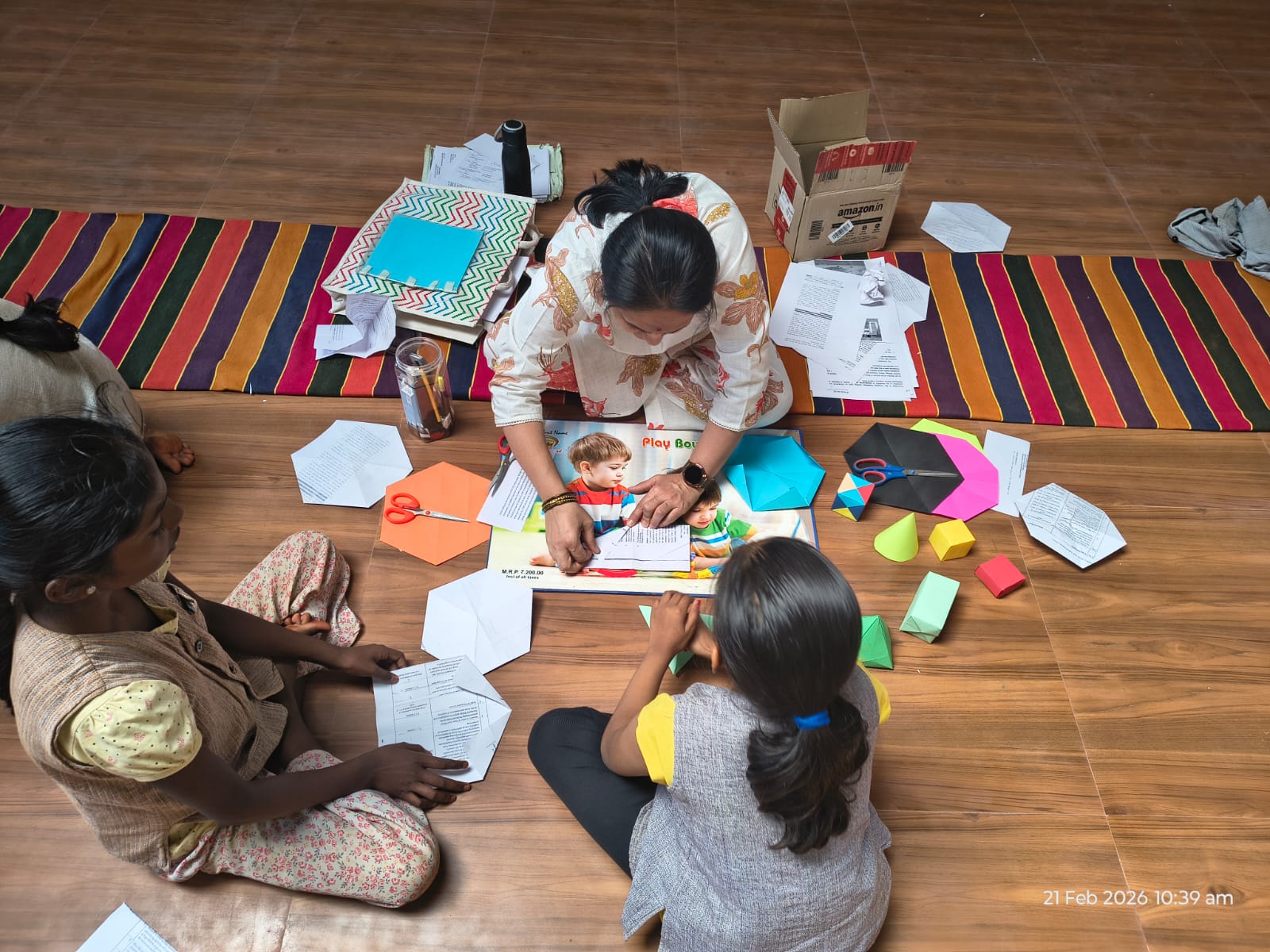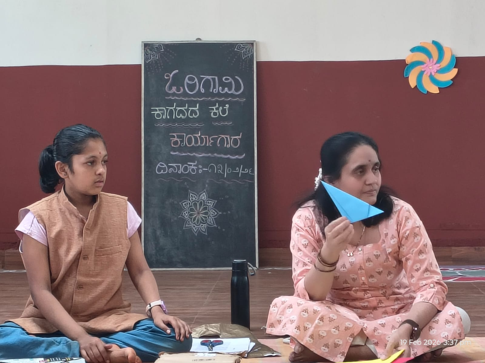 ೫ನೇ ವರ್ಗದ ಮಕ್ಕಳಿಗೆ ಗೌರಿ ಮೌಶಿ ಒರಿಗಾಮಿ ಬಳಸಿ ಆಕೃತಿಗಳನ್ನು ಮಾಡುವುದನ್ನು ಹೇಳಿಕೊಟ್ಟರು.